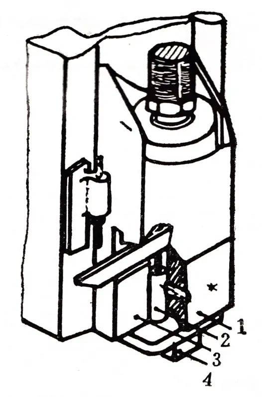 ①上模的安置。正在上模下面垫一木块,如图1所示。用手扳动飞轮,若有微动性能的冲床可按微动按钮,使滑块下移。同时转移上模秤谌地方,使模柄进入模柄孔。连续使滑块下移,直至滑块底平面紧贴上模座上平面。然后拧紧镶块上的紧固螺钉,如图2所示。大型冲床安置上模直接用螺钉紧固正在滑块的“T”形槽内。